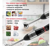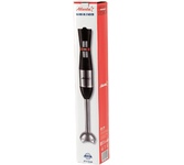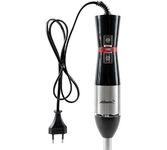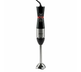 Блендер погружной, максимальная мощность 800 Вт, компактый размер - диаметр корпуса 42 мм, 2 скорости, насадка-блендер из нержавеющей стали, съемная насадка-венчик из нержавеющей стали, мини-измельчитель 500 мл, мерный стакан 700 мл, цвет черный с серым