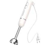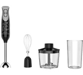Мощность 1000Вт, 3 в 1 блендер/миксер/капучинатор + мерная чаша в комплекте, 2 скоростных режима + плавная регулировка скорости, погружная насадка из стали + стальные лезвия.