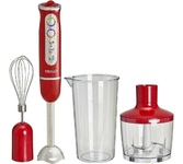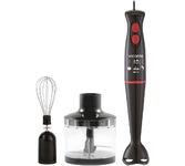Номинальная потребляемая мощность 800 Вт. Объем чаши мини-измельчителя 860 мл. Объем мерного стакана 600 мл. Индикатор сети с LED-подсветкой кнопок. Нож и насадка из нержавеющей стали с 4 лезвиями. Плавная регулировка скорости. Режим ТУРБО. Три сменных насадки. Противоскользящие ножки чаши мини-измельчителя. Низкий уровень шума. Цвет: красный. Насадка для измельчения и перемешивания. Венчик с держателем. Мини-измельчитель с крышкой. Мерный стакан.