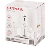 Параметры Максимальная мощность 1000 Вт Номинальная потребляемая мощность 600 Вт Объем чаши измельчителя 500 мл Объем мерного стакана 700 мл Описание Блендер электрический предназначен для смешивания, измельчения и взбивания продуктов и жидкостей в бытовых и аналогичных условиях Цвет: белый с красным Насадка и нож из нержавеющей стали Специальная заточка ножей Мерный стакан с крышкой Четыре сменные насадки: капучинатор из нержавеющей стали для приготовления молочной пенки, используемой для кофе измельчитель для измельчения орехов, трав, яиц, мяса, сыра, лука, рыбы, хлеба, чеснока, овощей и т.п. насадка для измельчения и смешивания для работы с мягкими и жидкими продуктами (приготовление соусов, супов, майонеза, детского питания, пюре, всех видов коктейлей и т.п.) венчик для взбивания яичных белков, сливок, смешивания жидких продуктов, замешивания жидкого теста Плавная регулировка скорости Режим «ТУРБО» Упаковка: цветная коробка