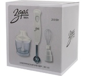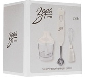 ЗАРЯ 301-03 Мощность 250 Вт, чаша-измельчитель (500 мл), насадка венчик, насадка блендер из нержавеющей стали УДОБНО Конструкция с прямым приводом наиболее удобна и проста в использовании. Ручка блендера изготовлена с учетом анатомических особенностей руки человека. МОЩНОСТЬ Высоко оборотистые двигатели данной модели позволяют свести время работы до нескольких секунд и полностью соответствуют европейским нормам безопасности. ЛЕГКОСТЬ В РАБОТЕ Использование разборной конструкции блендера позволяет его быстро мыть и компактно хранить. ФУНЦИОНАЛЬНОСТЬ С помощью блендера можно быстро и качественно: измельчить орехи, травы, сыр, приготовить горячее пюре прямо в кастрюле (50°С), смешать коктейль или детское питание.