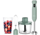 Блендер погружной, набор, максимальная мощность 1400 ватт, 2 скорости включая режим ТУРБО , погружная часть блендера из нержавеющей стали, измельчитель 500 мл, мерный стакан 700 мл, венчик для взбивания,