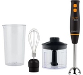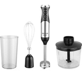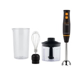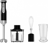 Блендер погружной, набор, максимальная мощность 800 ватт, 2 скорости включая режим ТУРБО , погружная часть блендера из нержавеющей стали, измельчитель 500 мл, мерный стакан 700 мл, венчик для взбивания, цвет корпуса черный с хромированной вставкой.