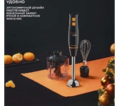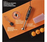 Блендер погружной многофункциональный 3 в 1 Мощность – 1200 Вт Напряжение – 220-240 В, 50-60 Гц Тип двигателя – DC Скорость вращения двигателя – 13000-18000 об/мин Чаша измельчителя – 500 мл Стакан для смешивания – 700 мл Режим «Турбо» - есть Плавная регулировка скоростей – есть