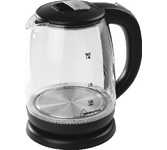 Объем 1,8 л. Номинальная потребляемая мощность 1500 Вт. Корпус из высококачественного термостойкого стекла. Закрытый нагревательный элемент из нержавеющей стали. Вращение корпуса на 360°. Цвет: черный. Шкала уровня воды. Внутренняя LED-подсветка. Отсек для хранения шнура питания. Автоматическое отключение при закипании. Блокировка включения без воды.