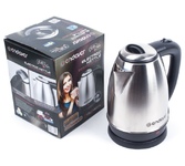 Мощность 1850-2200 Вт, 1.7 литра, двойные стенки (пластик снаружи, сталь внутри), подставка с вращением 360 градусов, световая индикация, автоотключение, скрытый нагревательный элемент.