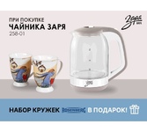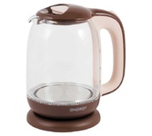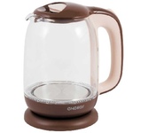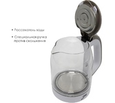 Мощность 1500 Вт, 2.0 литра, стеклянный корпус, LED-подсветка, подставка с вращением 360 градусов, шкала уровня воды, автоотключение, скрытый нагревательный элемент.