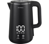 Двойные стенки корпуса. Холодное прикосновение. Светодиодный дисплей. Сенсорное управление. Максимальная мощность: 2200 Вт. Объем: 2 л. Выбор температуры нагрева воды: 45/55/70/85°C. Функция поддержания тепла. Защита от включения без воды. Автоматическое отключение при закипании. Автоматическое отключение при снятии чайника с базы. Угол вращения 360°. Материал корпуса: нержавеющая сталь внутри, пластик снаружи.