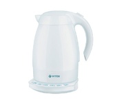 Мощность 2200Вт. Объем 1,7л. Материал корпуса керамика. Тип нагревательного элемента скрытый из нерж. стали. Индикатор уровня воды. Индикация включения. Блокировка включения без воды и блокировка крышки. Терморегулятор ступенчатый.