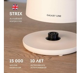 Чайник электрический, 2200 ватт, 1,7 литра, контроллер STRIX , светодиодная подсветка клавиши включения, кнопка открывания крышки, смотровое окно, фильтр от накипи, материал корпуса - нержавеющая сталь, цвет - белый