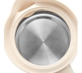 1.7 л, 1500-1800 Вт, дисковый нагревательный элемент, двухслойный корпус: нержавеющая сталь 304 и пищевой высококачественный пластик, эффект термоса (быстрее нагревается и дольше удерживает тепло), отключение при закипании/без воды, световой индикатор работы, внутренняя шкала уровня воды, вращение на 360°. Цвет корпуса: белый/коричневый. Длина шнура 0,7м.