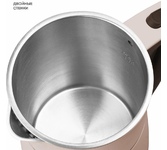 Мощность 2000Вт. Объём 1,8л. Скрытый нагрев. эл-т. Съёмный фильтр. Метал. корпус. Автооключение при отсутствии воды. Шкала уровня воды. Индикатор работы.