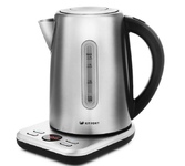 Мощность 2200 Вт. Максимальный объем 1.5 л. Нагревательный элемент скрытый. Индикатор включения есть. Индикатор уровня воды есть. Автоматическое отключение есть. Регулировка температуры нагрева есть. Температурные режимы 4 шт. Звуковой сигнал при закипании есть. Материал корпуса нержавеющая сталь/стекло. Цвет серебристый.