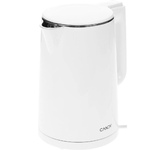 Корпус электрочайника Candy CK-400 выполнен из пластика и нержавеющей стали, оформлен в черном цвете. Двойные стенки обеспечивают дополнительную теплоизоляцию и безопасность. Залив воды возможен без открытия крышки. Объем чайника составляет 1,7 л. Сетевой кабель длиной 75 см можно хранить в специальном отсеке. Крышка открывается нажатием кнопки на корпусе. Функции и производительность: Позволяет выбирать один из шести режимов нагрева в диапазоне от 45°C до 100°C. Нагрев жидкости происходит быстро благодаря мощности 2200 Вт и дисковому элементу. Сенсорное управление с дисплеем: Обеспечивают точную установку параметров. Индикация отображает текущую температуру и режим работы. Звуковой сигнал оповещает о завершении кипячения. Системы безопасности: Включают автоматическое отключение при закипании, снятии с подставки или отсутствии воды. Фильтр предотвращает попадание накипи в напитки. Особенности: Электронное управление с выбором температуры 6 режимов выбора температуры: 45 — детское питание, 55 — разогрев меда,