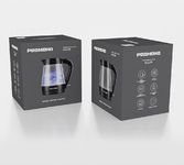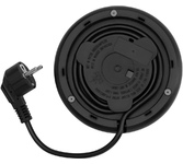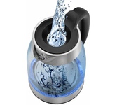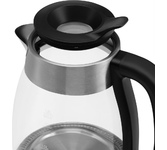 Мощность: 2200. Максимальный объем: 1.7. Нагревательный элемент: скрытый. Цвет: черный. Вес товара: 1. Габариты упаковки (ед) ДхШхВ: 0.205x0.195x0.26. Вес упаковки (ед): 1.59. Материал корпуса: пластик/стекло. Индикация: включения, уровня воды. Безопасность: автоотключение, защита от включения без воды. Конструктивные особенности: кнопка открытия крышки, подсветка воды, подставка 360, фильтр от накипи. Нагревательный элемент: скрытый. Материал корпуса: пластик/стекло. Объем: 1.7 л. Мощность: 2200 Вт