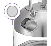 Мощность: 2200. Максимальный объем: 1.7. Нагревательный элемент: скрытый. Цвет: нержавеющая сталь. Вес товара: 1.5. Температурные режимы: 7. Габариты упаковки (ед) ДхШхВ: 0.24x0.205x0.287. Вес упаковки (ед): 1.95. Страна производства: Китай. Материал корпуса: стекло/металл. Конструктивные особенности: дисплей, подставка 360, фильтр от накипи. Дополнительные функции: поддержание температуры, регулировка температуры нагрева. Безопасность: автоотключение, защита от включения без воды. Индикация: включения, уровня воды. Объем: 1.7 л. Мощность: 2200 Вт. Нагревательный элемент: скрытый. Материал корпуса: стекло/металл