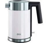 Чайник Graef WK 401 weiss выполнен в простом техничном дизайне, очень эффектно выглядит благодаря белому корпусу. Эта модель безопасна и проста в использовании - автоматически выключается, если ее снять с подставки или после закипания, крышка открывается только когда чайник выключен. Скрытый нагревательный элемент обеспечивает легкое мытье. Подставка под чайник предусматривает доступ с любой стороны. Характеристики: Материал: пластик, нержавеющая сталь Цвет: белый Объем: 1 л Габариты: 20.5 x 13 x 23 см Вес: 1 кг Нагревательный элемент: дисковый нагреватель Потребляемая мощность: 2015 Вт Напряжение: 220-240 В Тип управления: электромеханический Автоматическое отключение: да Блокировка включения без воды: да Дополнительные функции: защита от перегрева