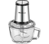 Измельчитель кухонный, Мощность 600 Вт, 2 скорости, объем стеклянной чаши 2 литра с противоскользящим основанием, 2 ножа, 4 лезвия из нержавеющей стали, Корпус измельчителя из нержавеющей стали, Питание: 220-240В ~ 50/60Гц.