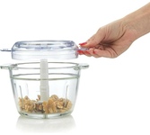 Чоппер-измельчитель 5в1 Мощность: 1500Вт Стеклянная чаша: 2,8л 3 скоростных режима Двухъярусный нож с 4-мя лезвиями Насадки: диск-терка двусторонняя, насадка для взбивания яиц, насадка для замешивания теста, насадка для очистки чеснока Противоскользящее основание Ножи из нержавеющей стали Механическое основание Сеть: 220-240В, 50Гц