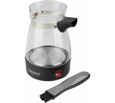 Электрическая турка Мощность 600 Вт Резервуар для воды 0,6 л Тип управления механический Тип используемого кофе молотый Материал корпуса стекло Цвет черный Срок гарантии 12 мес