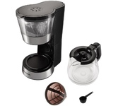 Тип кофеварки: капельная. Используемый кофе: молотый. Резервуар для воды: 1.2. Материал корпуса: металл/пластик/стекло. Тип нагревателя: проточный. Функция подачи горячей воды: есть. Тип управления: механическое. Индикатор нагрева: есть. Индикатор уровня воды: есть. Длина сетевого кабеля: 0.75. Вес товара: 1.4. Габариты упаковки (ед) ДхШхВ: 0.14x0.21x0.185. Вес упаковки (ед): 3.42. Гарантия: 12 мес.. Мощность: 900 Вт. Резервуар для готового кофе: пластик. Цвет: черный. Тип кофеварки: капельная. Мощность: 900 Вт. Тип кофе: молотый. Функции: подача горячей воды. Материал корпуса: металл/пластик/стекло