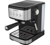 Кофеварка рожковая, Мощность: 850 вт, Давление помпы: 15 бар, Съемный резервуар для воды: 1,6 литра, Капучинатор, Индикатор уровня воды, Индикация включения, Подогрев чашек, Приготовление капучино, Приготовление эспрессо, Съемный лоток для сбора капель, Материал корпуса: нержавеющая сталь/пластик, Особенности: Итальянская помпа фирмы Ulka; Кофеварка с термоблоком обеспечит безупречный вкус напитка, быстроту приготовления, уменьшить затраты на электроэнергию;, Тип используемого кофе: молотый, Цвет: Серебро/черный