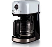Кофеварка капельная, мощность 1200 Вт, объем 1,4 л, тип используемого кофе: молотый, тип напитка: американо, лунго, ристретто, эспрессо. Контроль крепости кофе, индикация уровня воды, работы, противокапельная система, таймер. Цвет: белый.