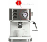 Мощность 1100 Вт Давление помпы 15 бар Встроенный капучинатор с панелью индикации температуры Съемный прозрачный резервуар для воды 1,2 л Защита от перегрева и избыточного давления Съемный поддон для сбора капель Варианты кофе: эспрессо и капучино Функция вспенивания для легкой очистки Бойлер из алюминиевого сплава (die-cast) Рожок из нержавеющей стали на 2 чашки Напряжение: 220-240 В, 50-60 Гц Длина шнура 105 см В комплекте мерная ложка-темпер
