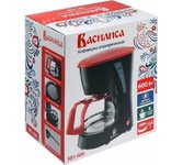 Кофеварка капельная Корпус из пластика + сталь Объем резервуара для воды 1,25 л Колба для кофе из жаропрочного стекла Фильтр из нейлона Съемный поддон для сбора капель для легкой очистки Мощность: 600 Вт Напряжение: 220-240 В, 50 Гц Длина шнура 69,6 см В комплекте мерная ложка