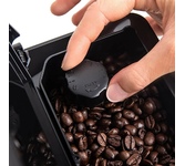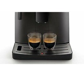 Полностью автоматическая эспрессо-кофемашина; 2 вида кофе, автоматический капучинатор, Сенсорная панель управления, мощность 1500 Вт, емкость для воды 1,8 л, емкость для зерен 275 гр, индикация: готовности к работе, необходимости очистки от накипи, отсутствия воды, отсутствия кофе, режима работы, Тип используемого кофе: зерновой, молотый, Количество степеней помола: 12¶Виды напитков: Эспрессо, Капучино, Латте, Американо, Кол-во одновременно приготовляемых чашек кофе: 2 шт, Автоотключение, Автоотключение при отсутствии воды, контроль крепости коф, настройка температуры напитка, В комплекте: Мерная ложка, тестовая полоска для проверки жесткости воды, фильтр для воды AquaClean, тюбик со смазкой, ёмкость для молока, Цвет: черный