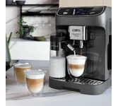 Тип: кофемашина. Мощность: 1500. Давление помпы: 15. Тип используемого кофе: зерновой, молотый. Капучинатор: есть. Встроенная кофемолка: есть. Емкость контейнера для зерен: 275. Объем резервуара для воды: 1.8. Одновременное приготовление двух порций: есть. Информационный дисплей: есть. Автоочистка от накипи: есть. Материал корпуса: пластик. Количество уровней крепости: 3. Подача пара и горячей воды: есть. Количество степеней помола: 12. Автоматическое выключение: есть. Ширина товара: 24.6. Высота товара: 43.3. Глубина товара: 37.1. Вес товара: 8. Встроенная программа самоочистки: есть. Тип капучинатора: автоматический. Кувшин для молока: есть. Объем емкости для молока: 260. Габариты упаковки (ед) ДхШхВ: 0.495x0.301x0.477. Вес упаковки (ед): 10. Гарантия: 12 мес.. Цвет: черный. Напитки, приготовливаемые автоматически: капучино, латте макиато, эспрессо. Съемные элементы: блок заваривания, дренажный отсек для капель, отсек для отработанного кофе. Регулировка: крепости напитка, объема напитка, степени помола, тем