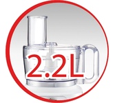 Описание КОМПЛЕКТАЦИЯ: Чаша для измельчения (объём 2,0 л) Нож для измельчения Мерный стакан для смешивания (объём 0,6 л) Насадка венчик Насадка миксер Насадка блендер с 4-х лопастным ножом Насадка для нарезки кубиками Насадка для приготовления пюре Диск-тёрка для драников Двусторонний диск для терки и нарезки/шинковки Толкатель Характеристики Номинальная потребляемая мощность: 550Вт Максимальная мощность: 1500 Вт Технология Easy Touch - удобное и многофункциональное управление одной кнопкой Плавная регулировка скорости 9 основных функций: приготовление пюре, нарезка кубиками, приготовление напитков, замешивание теста, взбивание, нарезка, шинковка, тёрка, измельчение
