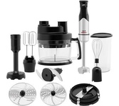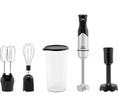 Номинальная потребляемая мощность: 550 Вт Максимальная мощность: 1000 Вт 2 скоростных режима 8 основных функций: Приготовление напитков, Отжим сока из цитрусовых, Замешивание теста, Взбивание, Нарезка, Шинковка, Тёрка, Измельчение КОМПЛЕКТАЦИЯ: Чаша для измельчения (объём 1,2 л) Нож для измельчения Чаша блендера (объём 1,75 л) Венчик для взбивания Насадка для густого теста Диск для приготовления эмульсии Насадка для отжима сока из цитрусовых Насадка-терка для драников Насадка-терка Насадка-нарезка/шинковка Толкатель