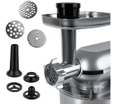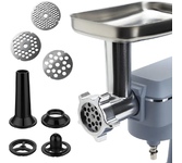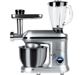 Планетарный миксер с 3-мя насадками Мясорубка Блендер Насадка «Кебби» для приготовления сосисок и кебаб 8 скоростных режимов с плавным переключением + импульсный режим DMP двойная защита двигателя (от перегрева, от перегрузки) PowerMix – планетарное вращение насадок Чаша 5,5 л из нержавеющей стали с ручкой для удобства Крышка чаши – для защиты от брызг, с воронкой для добавления ингредиентов во время приготовления Отсек для намотки сетевого шнура Non Slip Effect – прорезиненные нескользящие ножки Комплектация насадок: насадка для смешивания крюк для замешивания теста венчик для взбивания насадка-мясорубка с 2 дисками из нержавеющей стали (5 и 7 мм) насадка "Кеббе" для приготовления сосисок и кебаб кувшин блендера из высокопрочного стекла, 1,5 л Максимальная мощность: 1 200 Вт