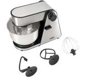 Мощность: 1200 Вт Высокопроизводительная кухонный комбайн Электронный таймер / ЖК-дисплей с подсветкой Электронный контроль скорости 10 скоростей + импульсный режим Плавный старт Чаша из стали 6,2 л для 3-3,5 кг теста Стеклянная чаша блендера 1,5 л Венчик для легкого теста и яичных белков Алюминиевый литой крюк для тяжелого теста Алюминиевый литой крюк для перемешивания Поворотный механизм на 35 ° с блокировкой Прозрачная крышка с отверстием для добавления продуктов Система безопасности Нескользящие ножки-присоски Быстрозажимной патрон для насадок Мясорубка: 3 решетки, насадка для колбас, насадка для печенья, насадки для макарон Габариты: 29.3x33.6x42.1 см