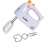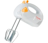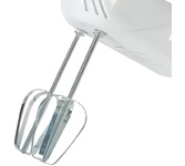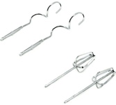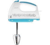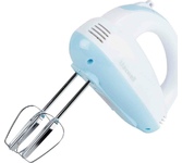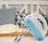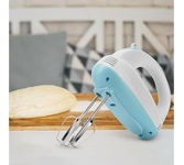 Миксер,150W: 7 скоростей работы, кнопка извлечения насадок, двойной набор насадок: два венчика для взбивания яиц и кремов, две насадки для размешивания тяжелого теста, смешивание жидкостей, замешивание теста, приготовление пюре, взбивание сливок и белков.