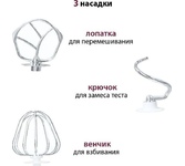 Планетарный миксер. Мощность: 1000 Вт Количество скоростей: 6 Чаша: 3.5 л Количество насадок в комплекте: 3 шт Насадки: лопатка для перемешивания В комплекте: крышка для чаши Особенности: планетарное вращение, Цвет: Черный