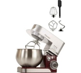 Миксер планетарный, cтильный дизайн, максимальная мощность: 1000Вт, чаша из нержавеющей стали, объем чаши 5 л, защитная прозрачная крышка от брызг, 6 скоростей,импульсный режим, защита двигателя от перегрева, светодиодный индикатор включения, наклонная головка позволяет легко снимать чашу и менять аксессуары, планетарное вращение для тщательного перемешивания, удобная крышка с отверстием для добавления продуктов во время перемешивания, противоскользящие ножки