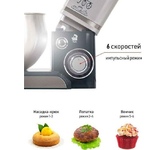 Кухонная машина Мощность (макс) – 1200 Вт Напряжение – 220-240 В, 50/60 Гц Система смешивания – планетарная Объем чаши – 5.2 л Кол-во насадок – 3 Кол-во скоростей – 6 Импульсный режим (Пульс) – да Тип двигателя – АС (с усиленной медной обмоткой) Плавный запуск двигателя – да