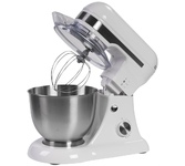 Миксер планетарный, cтильный дизайн, максимальная мощность: 1000Вт, чаша из нержавеющей стали, объем чаши 5 л, защитная прозрачная крышка от брызг, 6 скоростей,импульсный режим, защита двигателя от перегрева, светодиодный индикатор включения, наклонная головка позволяет легко снимать чашу и менять аксессуары, планетарное вращение для тщательного перемешивания, удобная крышка с отверстием для добавления продуктов во время перемешивания, противоскользящие ножки