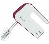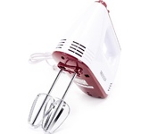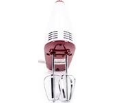 Номинальная потребляемая мощность 400 Вт, Миксер предназначен для смешивания продуктов, создания однородной массы и обогащения взбиваемой жидкости воздухом, Миксером взбивают и замешивают яйца, сливки, коктейли, мусс, омлет, легкое тесто, пюре, соусы и другие продукты, Цвет: белый с бордовым, Кнопка извлечения насадок, 2 венчика для взбивания яиц и крема, 2 насадки для замешивания теста, 5 скоростных режимов, Режим "ТУРБО". С этим товаром рекомендуем также посмотреть: