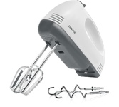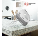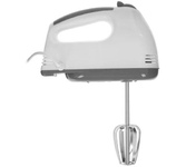 Миксер ручной, мощность 300 Вт, 5 скоростных режимов, 2 венчика для взбивания, 2 крюка для замешивания теста, кнопка извлечения насадок, легкий и удобный в использовании, длина сетевого шнура 1.1 м, электропитание 220-240 В, 50/60 Гц
