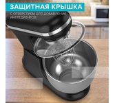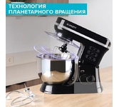 Миксер планетарный, корпус с покрытием из нержавеющей стали, cтильный дизайн, максимальная мощность: 1300Вт, чаша из нержавеющей стали, объем чаши 6 л, защитная прозрачная крышка от брызг, 6 скоростей,импульсный режим, защита двигателя от перегрева, светодиодный индикатор включения, наклонная головка позволяет легко снимать чашу и менять аксессуары, планетарное вращение для тщательного перемешивания, удобная крышка с отверстием для добавления продуктов во время перемешивания, противоскользящие ножки