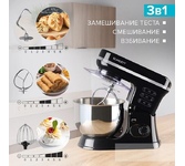 Максимальная мощность 1400 Вт Номинальная мощность 1200Вт Объем чаши 5.2 л 6 скоростей + импульсный режим Яркая подсветка скоростной панели Материал чаши и венчика – нержавеющая сталь Длина Шнура 1м Плюсы: Работу важнейших элементов обеспечивают металлические шестеренки Защита от перегрева и перегрузки Прозрачная крышка с отверстием для добавления ингредиентов Защита от включения с открытой чашей Чашу миксера и венчик можно мыть в посудомоечной машине Венчик для взбивания, крюк для замешивания теста, лопатка для смешивания, крышка с отверстием для добавления ингредиентов