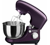 1600 Вт 6 скоррстей , импульсный режим. В комплект входит венчик для взбивания, крюки для теста,лопатка для перемешивания,крышка для чаши 3 насадки Материал чаши - нержавеющая сталь Ёмкость чаши 5,5 л Прорезиненные ножки Цвет фиолетовый Срок гарантии 12 мес