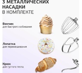 Максимальная загрузка 1.8 кг Планетарное вращение ДА Скорость вращения 190 об/мин Объем чаши 5 л Прочие функции 3D-вращение насадок Материал корпуса нержавеющая сталь/пластик Количество насадок в комплекте 3 шт Книга рецептов в комплекте ДА Комплектация: Миксер; защитный обод для чаши; чаша; 3 насадки; кулинарная силиконовая лопатка; книга рецептов; мануал с гарантийным талоном Мойка съемных частей в посудомоечной машине ДА Прорезиненные ножки ДА