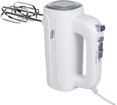 Параметры электросети, В/Гц 220-240 / 50-60 Мощность, Вт 500 Цвет белый, серебристый Количество скоростей 5 Время непрерывной работы 3 мин Размеры изделия, мм 275?85?205 Вес, кг 0,98 2 комплекта насадок (венчики и крюки) Кнопка быстрого отсоединения насадок Регулировка скорости Импульсный режим Защита от перегрева