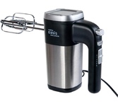 Миксер, 250W, 5 скоростей работы, кнопка извлечения насадок, двойной набор насадок: два венчика для взбивания яиц и кремов, две насадки для размешивания тяжелого теста, смешивание жидкостей, замешивание теста, приготовление пюре, взбивание сливок и белков.