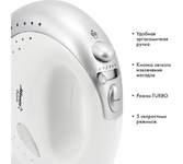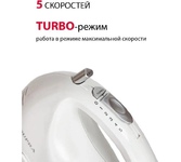 Миксер ручной, мощность 350 ватт, 5 скоростей, режим -Турбо, эффективная система охлажения, венчики для взбивания яиц и крема, крючки для замеса теста