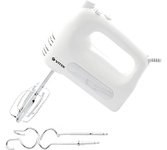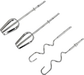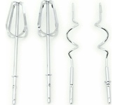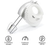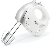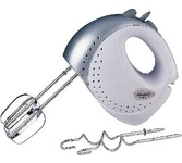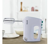 Миксер, 350W, 5 скоростей работы, кнопка извлечения насадок, двойной набор насадок: два венчика для взбивания яиц и кремов, две насадки для размешивания тяжелого теста, смешивание жидкостей, замешивание теста, приготовление пюре, взбивание сливок и белков